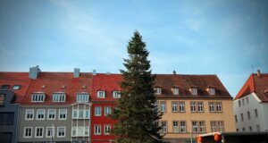 Schweinfurt: 19 Meter Weihnachtsbaum steht – Weihnachtsstimmung kann kommen